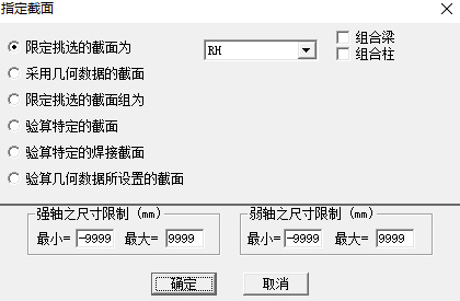 * 验证结构选用的杆件时,可以限定截面类型,或在限定型钢类型内限定杆件的截面尺寸