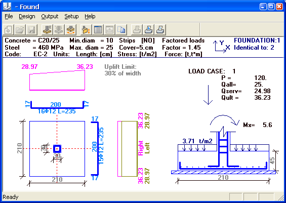 STRAP基础设计模块主要用来分析设计钢筋混凝土扩展基础详细功能如下:
